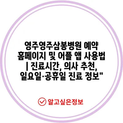 영주영주삼봉병원 예약 홈페이지 및 어플 앱 사용법 | 진료시간, 의사 추천, 일요일·공휴일 진료 정보에 대해 자주 묻는 질문 TOP 5