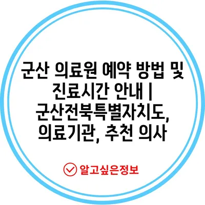 ✅ 군산 의료원 예약 방법과 팁을 지금 확인해 보세요.