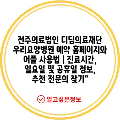 ✅ 전주의료법인 디딤의료재단 예약 방법과 진료 정보를 자세히 알아보세요.