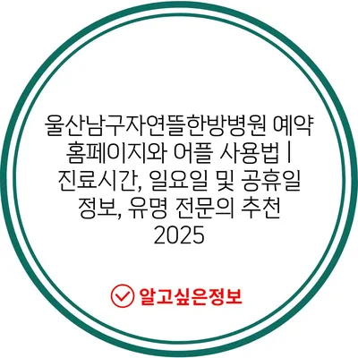 울산남구자연뜰한방병원 예약 홈페이지와 어플 사용법 | 진료시간, 일요일 및 공휴일 정보, 유명 전연락 추천 2025에 대해 알아보겠습니다.