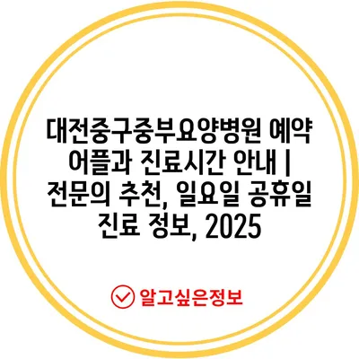 대전중구중부요양병원 예약 어플과 진료시간 공지 | 전연락 추천, 일요일 공휴일 진료 정보, 2025 에 대해 자주 묻는 질문 TOP 5