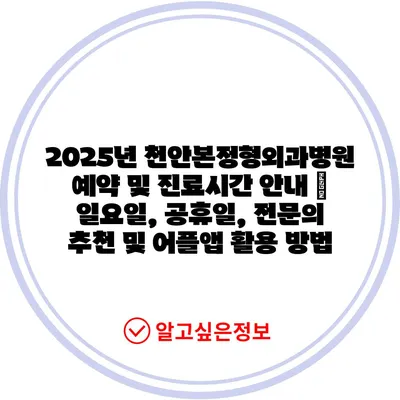 2025년 천안본정형외과병원 예약 및 진료시간 공지 | 일요일, 공휴일, 전연락 추천 및 어플앱 활용 방법 에 대해 자주 묻는 질문 TOP 5