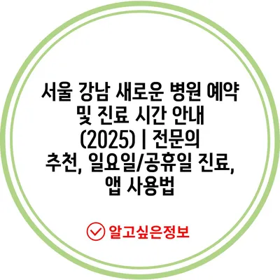 서울 강남 새로운 병원 예약 및 진료 시간 안내 (2025) | 전문의 추천, 일요일/공휴일 진료, 앱 사용법