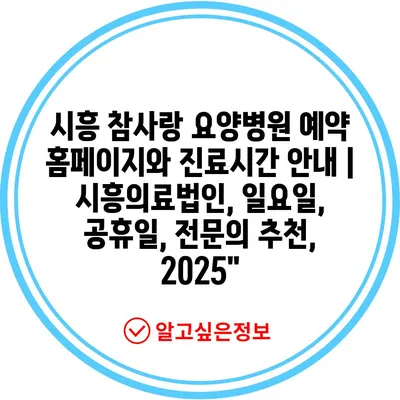 시흥 참사랑 요양병원 예약 홈페이지와 진료시간 안내 | 시흥의료법인, 일요일, 공휴일, 전문의 추천, 2025″
