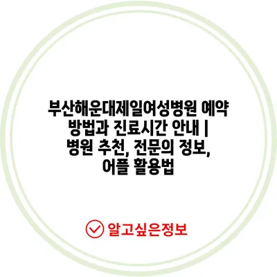 부산해운대제일여성병원 예약 방법과 진료시간 안내 | 병원 추천, 전문의 정보, 어플 활용법