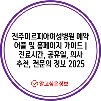 전주미르피아여성병원 예약 어플 및 홈페이지 가이드 | 진료시간, 공휴일, 의사 추천, 전문의 정보 2025