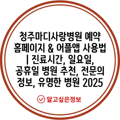 청주마디사랑병원 예약 홈페이지 & 어플앱 사용법 | 진료시간, 일요일, 공휴일 병원 추천, 전문의 정보, 유명한 병원 2025