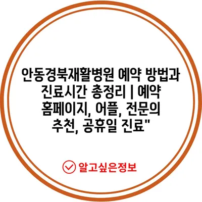 안동경북재활병원 예약 방법과 진료시간 총정리 | 예약 홈페이지, 어플, 전문의 추천, 공휴일 진료”