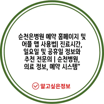 순천은병원 예약 홈페이지 및 어플 앱 사용법| 진료시간, 일요일 및 공휴일 정보와 추천 전문의 | 순천병원, 의료 정보, 예약 시스템”