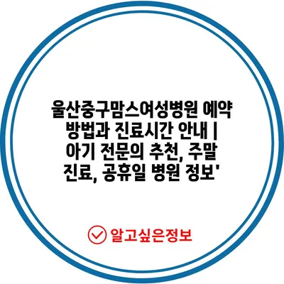 울산중구맘스여성병원 예약 방법과 진료시간 안내 | 아기 전문의 추천, 주말 진료, 공휴일 병원 정보’