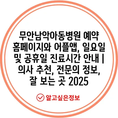 무안남악아동병원 예약 홈페이지와 어플앱, 일요일 및 공휴일 진료시간 안내 | 의사 추천, 전문의 정보, 잘 보는 곳 2025