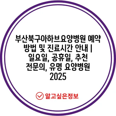 부산북구아하브요양병원 예약 방법 및 진료시간 안내 | 일요일, 공휴일, 추천 전문의, 유명 요양병원 2025