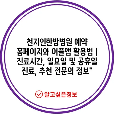 천지인한방병원 예약 홈페이지와 어플앱 활용법 | 진료시간, 일요일 및 공휴일 진료, 추천 전문의 정보”