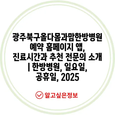 광주북구올다몸과맘한방병원 예약 홈페이지 앱, 진료시간과 추천 전문의 소개 | 한방병원, 일요일, 공휴일, 2025