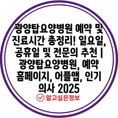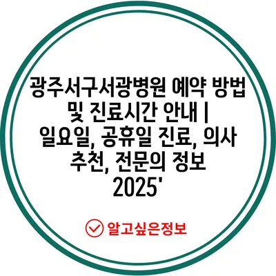 광주서구서광병원 예약 방법 및 진료시간 안내 | 일요일, 공휴일 진료, 의사 추천, 전문의 정보 2025′