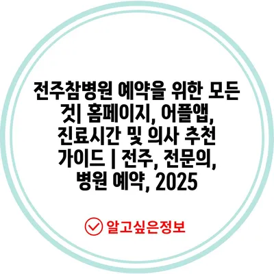 전주참병원 예약을 위한 모든 것| 홈페이지, 어플앱, 진료시간 및 의사 추천 가이드 | 전주, 전문의, 병원 예약, 2025