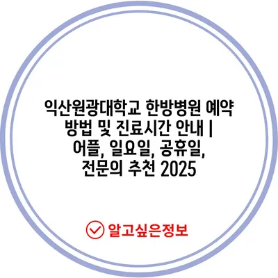 익산원광대학교 한방병원 예약 방법 및 진료시간 안내 | 어플, 일요일, 공휴일, 전문의 추천 2025