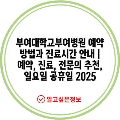 부여대학교부여병원 예약 방법과 진료시간 안내 | 예약, 진료, 전문의 추천, 일요일 공휴일 2025