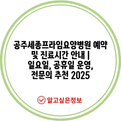 공주세종프라임요양병원 예약 및 진료시간 안내 | 일요일, 공휴일 운영, 전문의 추천 2025