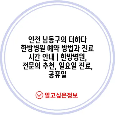 인천 남동구의 더하다 한방병원 예약 방법과 진료 시간 안내 | 한방병원, 전문의 추천, 일요일 진료, 공휴일