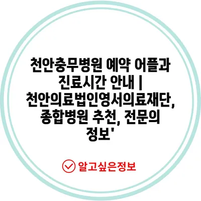 천안충무병원 예약 어플과 진료시간 안내 | 천안의료법인영서의료재단, 종합병원 추천, 전문의 정보’