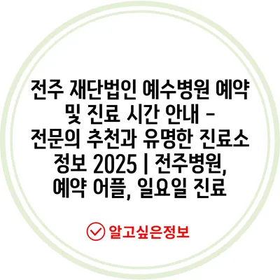 전주 재단법인 예수병원 예약 및 진료 시간 안내 – 전문의 추천과 유명한 진료소 정보 2025 | 전주병원, 예약 어플, 일요일 진료
