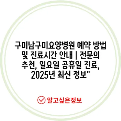 구미남구미요양병원 예약 방법 및 진료시간 안내 | 전문의 추천, 일요일 공휴일 진료, 2025년 최신 정보”
