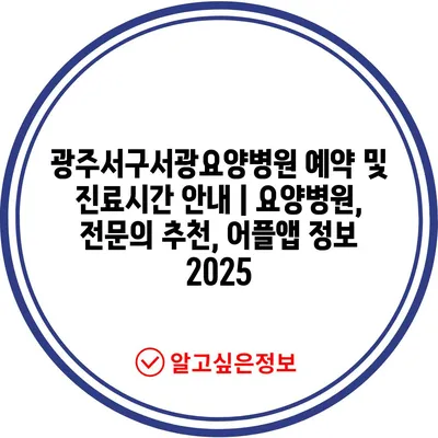 광주서구서광요양병원 예약 및 진료시간 안내 | 요양병원, 전문의 추천, 어플앱 정보 2025