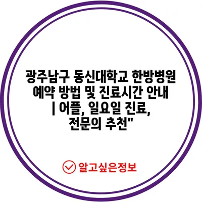 광주남구 동신대학교 한방병원 예약 방법 및 진료시간 안내 | 어플, 일요일 진료, 전문의 추천”