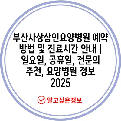 부산사상삼인요양병원 예약 방법 및 진료시간 안내 | 일요일, 공휴일, 전문의 추천, 요양병원 정보 2025