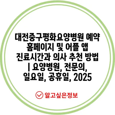 대전중구평화요양병원 예약 홈페이지 및 어플 앱 진료시간과 의사 추천 방법 | 요양병원, 전문의, 일요일, 공휴일, 2025