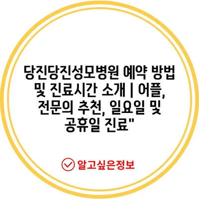 당진당진성모병원 예약 방법 및 진료시간 소개 | 어플, 전문의 추천, 일요일 및 공휴일 진료”