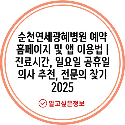 순천연세광혜병원 예약 홈페이지 및 앱 이용법 | 진료시간, 일요일 공휴일 의사 추천, 전문의 찾기 2025
