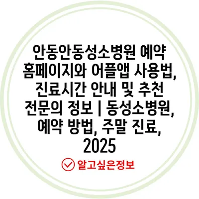 안동안동성소병원 예약 홈페이지와 어플앱 사용법, 진료시간 안내 및 추천 전문의 정보 | 동성소병원, 예약 방법, 주말 진료, 2025