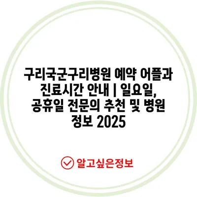 구리국군구리병원 예약 어플과 진료시간 안내 | 일요일, 공휴일 전문의 추천 및 병원 정보 2025