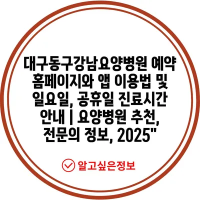 대구동구강남요양병원 예약 홈페이지와 앱 이용법 및 일요일, 공휴일 진료시간 안내 | 요양병원 추천, 전문의 정보, 2025″