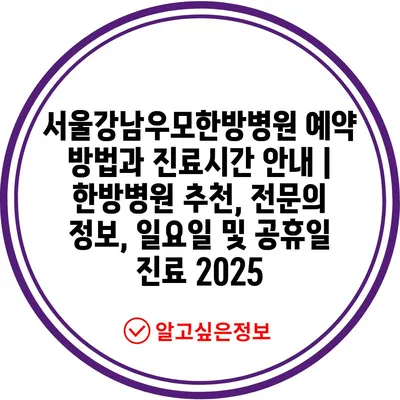 서울강남우모한방병원 예약 방법과 진료시간 안내 | 한방병원 추천, 전문의 정보, 일요일 및 공휴일 진료 2025