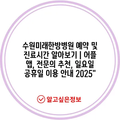 수원미래한방병원 예약 및 진료시간 알아보기 | 어플 앱, 전문의 추천, 일요일 공휴일 이용 안내 2025″