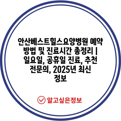 안산베스트힐스요양병원 예약 방법 및 진료시간 총정리 | 일요일, 공휴일 진료, 추천 전문의, 2025년 최신 정보