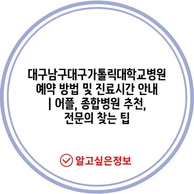 대구남구대구가톨릭대학교병원 예약 방법 및 진료시간 안내 | 어플, 종합병원 추천, 전문의 찾는 팁
