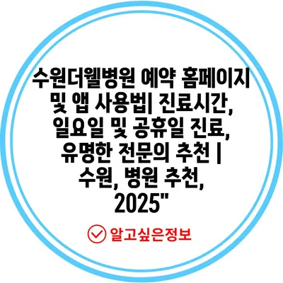 수원더웰병원 예약 홈페이지 및 앱 사용법| 진료시간, 일요일 및 공휴일 진료, 유명한 전문의 추천 | 수원, 병원 추천, 2025″