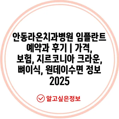 안동라온치과병원 임플란트 예약과 후기 | 가격, 보험, 지르코니아 크라운, 뼈이식, 원데이수면 정보 2025