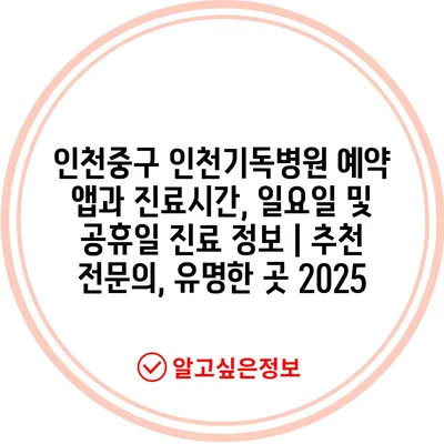 인천중구 인천기독병원 예약 앱과 진료시간, 일요일 및 공휴일 진료 정보 | 추천 전문의, 유명한 곳 2025