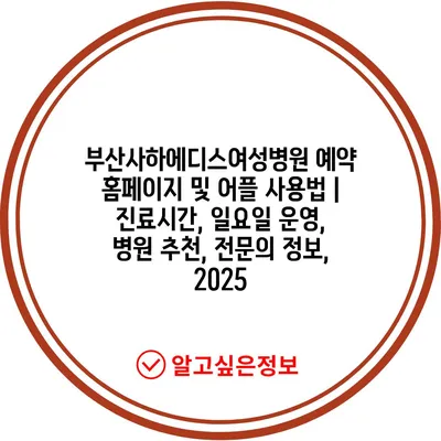 부산사하에디스여성병원 예약 홈페이지 및 어플 사용법 | 진료시간, 일요일 운영, 병원 추천, 전문의 정보, 2025