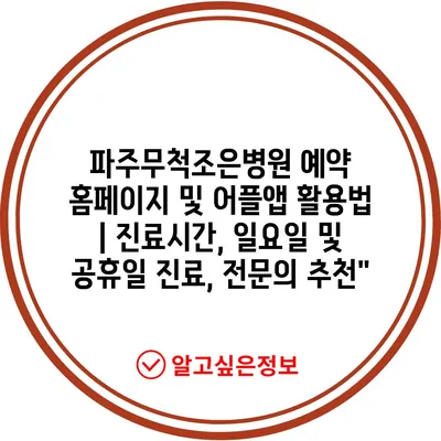 파주무척조은병원 예약 홈페이지 및 어플앱 활용법 | 진료시간, 일요일 및 공휴일 진료, 전문의 추천”