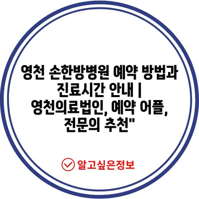 영천 손한방병원 예약 방법과 진료시간 안내 | 영천의료법인, 예약 어플, 전문의 추천”