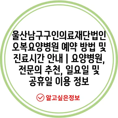 울산남구구인의료재단법인 오복요양병원 예약 방법 및 진료시간 안내 | 요양병원, 전문의 추천, 일요일 및 공휴일 이용 정보