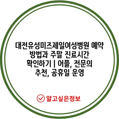 대전유성미즈제일여성병원 예약 방법과 주말 진료시간 확인하기 | 어플, 전문의 추천, 공휴일 운영