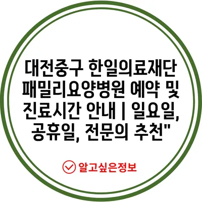 대전중구 한일의료재단 패밀리요양병원 예약 및 진료시간 안내 | 일요일, 공휴일, 전문의 추천”