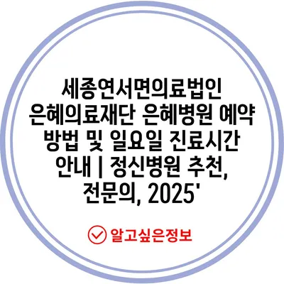 세종연서면의료법인 은혜의료재단 은혜병원 예약 방법 및 일요일 진료시간 안내 | 정신병원 추천, 전문의, 2025′